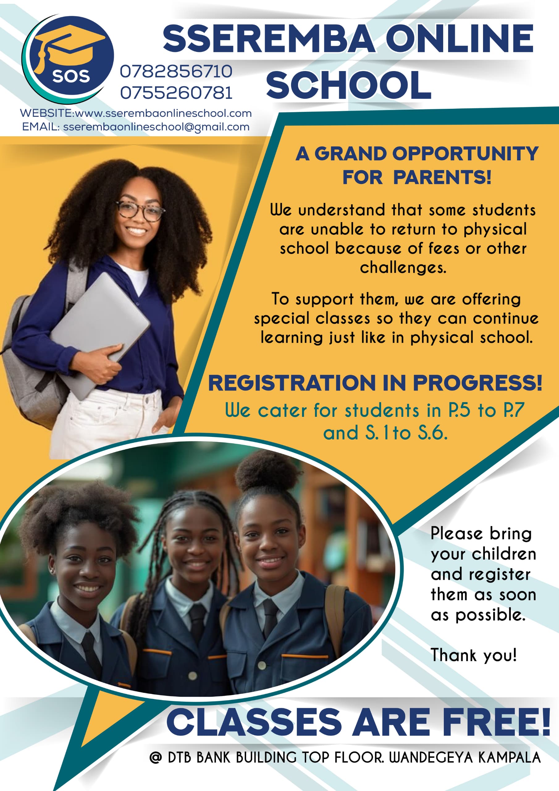 Did you miss term 1, term 2, have school fees problems and you wish to continue with your education just like you would be in a Physical school, you have been covered. Enrol at Sseremba online school. Click the whats app button to join .